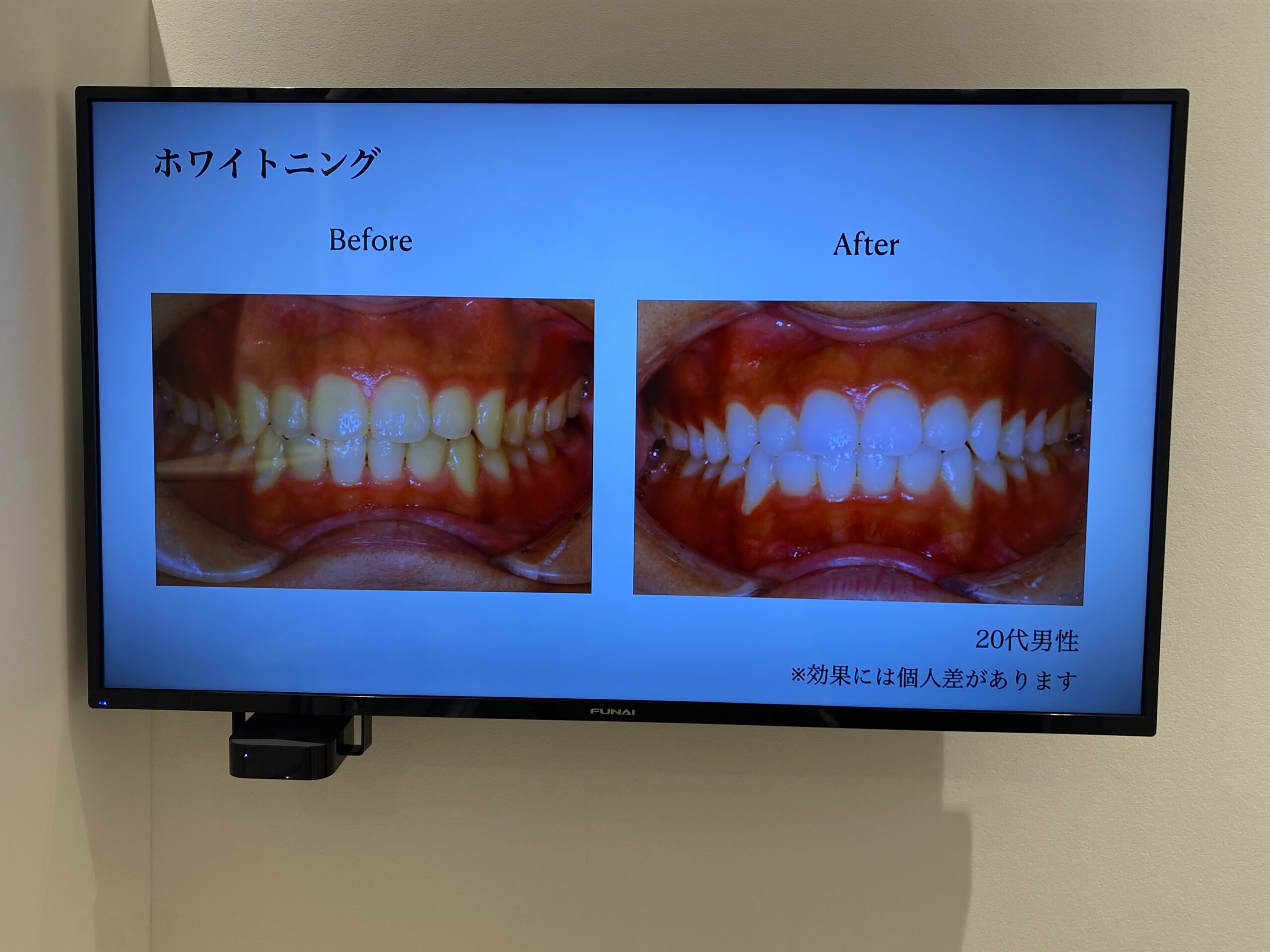 ホワイトニング、矯正などの写真を分かりやすくbefore afterでスライドを流したりしております。