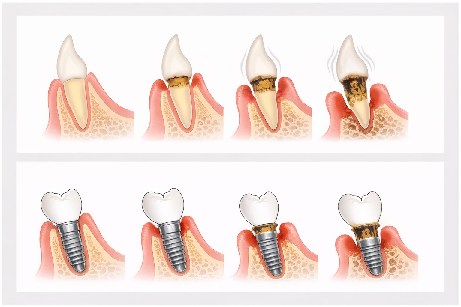 逆に、歯周病を放置したままでは、天然歯と同様にインプラント周囲にも炎症が広がる可能性があります。長持ちする人は、自身の歯周状態を理解し、継続的に管理しています。