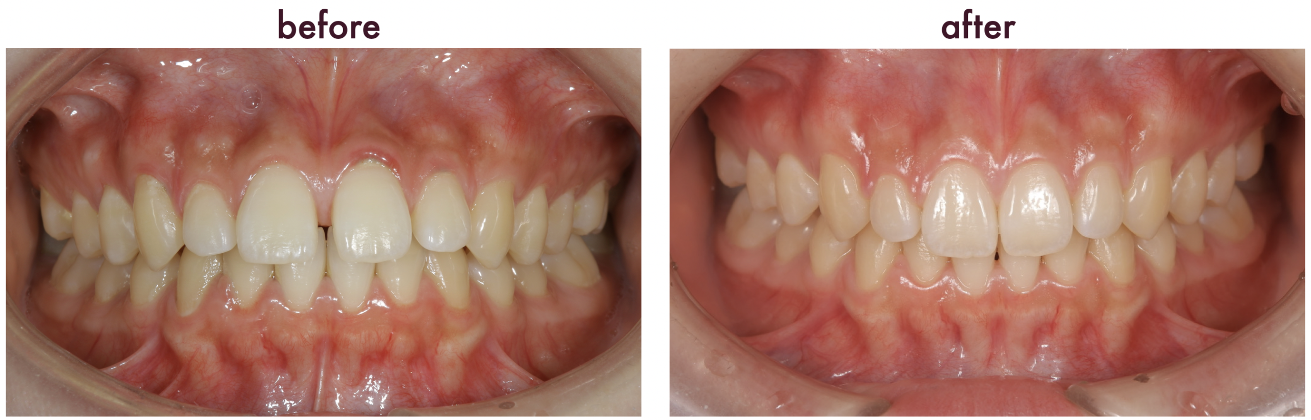 こちらの写真はインビザラインにて矯正治療を行った例になります。見た目ももちろんですが、噛み合わせも改善し、非常に綺麗な歯ならびになりました。