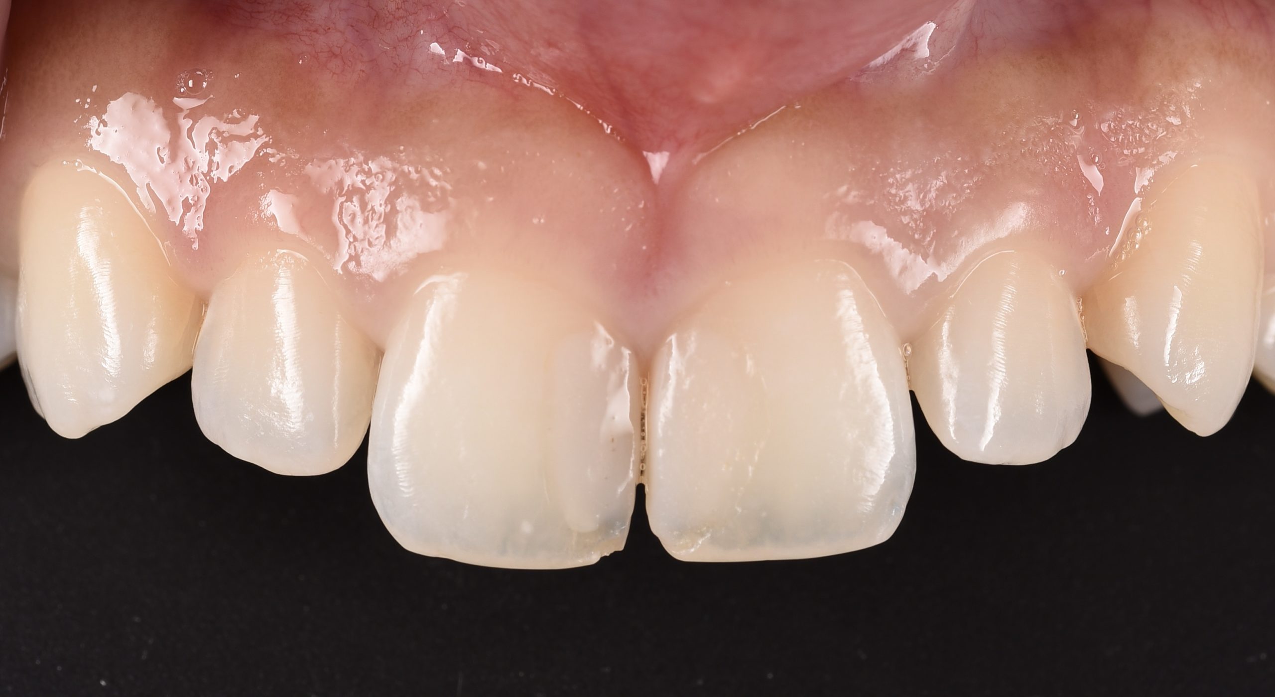 この写真は治療前の写真です。中切歯2本の間に虫歯がありました。